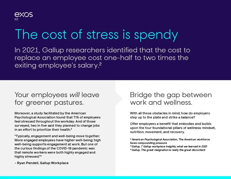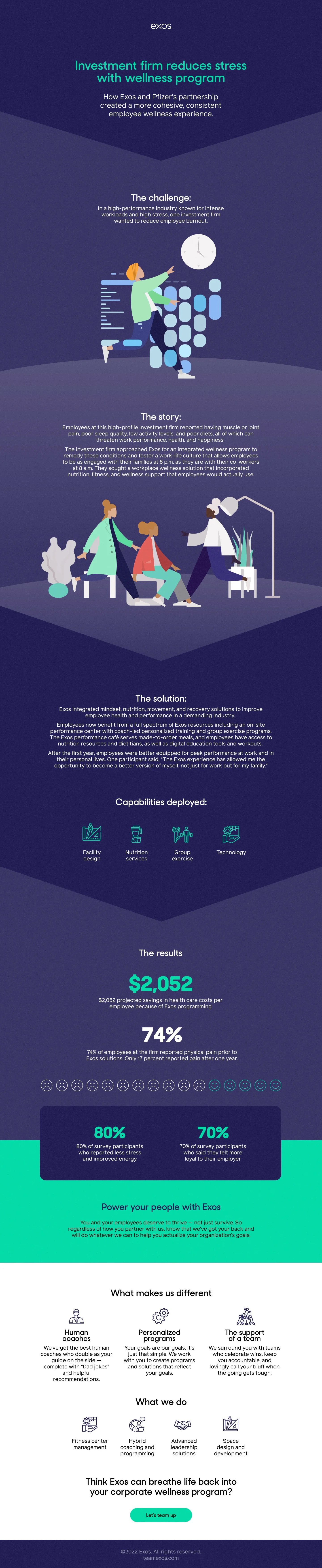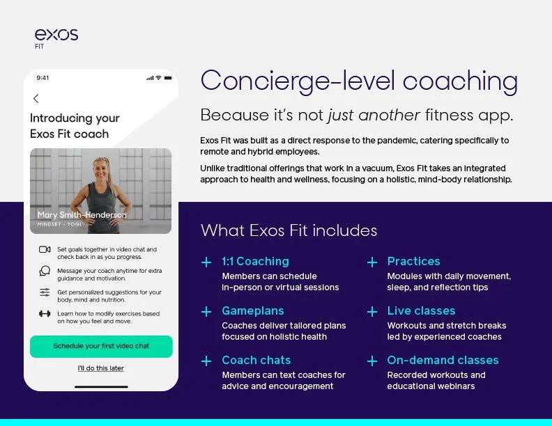 Exos is a leader in the corporate wellness industry and leverages case studies to exhibit their wide range of solutions as well as the results they are able to achieve with each client.